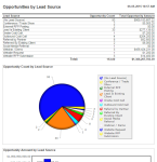 This report contains graphs that show opportunity count and amount by lead source for opportunities created during a specified time frame. |