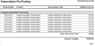 Description This report provides information on subscriptions posted in the system, grouped by organization. Data may be filtered by posted date.