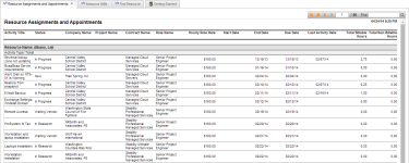 Project assignments for selected resources during a defined date range, grouped by resource. Can be sorted by Start or End Date. |