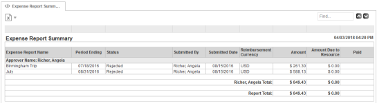NOTE If you group this report by Approver Name, submitted expense reports will display grouped by their approver or rejector.