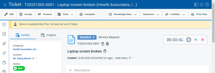 This alert appears at the top of the ticket when adding a new ticket for this organization. |