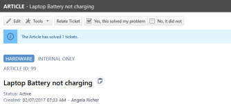 • Check Yes, this solved my problem if the article presented a solution to the ticket.