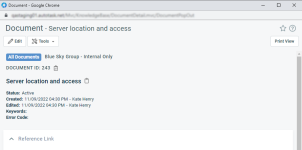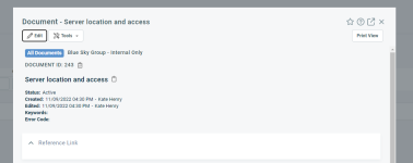 Puts the item into Edit mode. This button appears only for users with Edit privileges. Refer to Knowledge Base and Documents security settings.