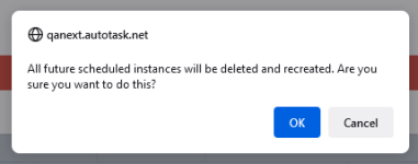 - To update future instances that have been created, you must delete them first, and then extend the end date or increase the number of instances by the number you deleted. You will receive a message that all future instances will be deleted and recreated using the updated information.
