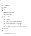 The Tools menu on the Ticket page offers a great deal of flexibility in creating incidents, problems, and associating the two. The available options depend on the ticket type you are viewing.