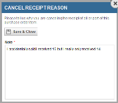- Depending on a system setting, you may be prompted to enter a reason why you are canceling the receipt of a purchase order item, and the note may be required. Refer to Require/prompt users to enter a reason when manually updating an inventory item’s On Hand quantity, or when canceling receipt of a purchase order item.