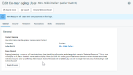 NAVIGATION In addition to the paths in the Security and navigation section, also here: Left Navigation Menu > CRM > Search > Contacts > click Search > click a contact name > accessory tabs > Co-managed User > Manage Resource Settings