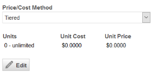 - Tier - When you select this cost/price method, you will have a different price level at each tier. A separate charge is created for each price tier.