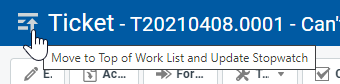 - On the Ticket page, click the Move to Top of Work List and Update Stopwatch button.