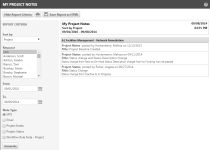Description Project notes entered by the logged in user, for the selected date range and note type.