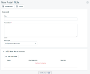 To attach a file to the note, click Add Attachment, select the attachment type, select a file, and give the attachment an easily recognizable name. Refer to Adding and managing attachments for more information.