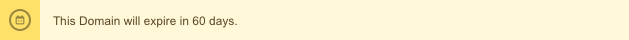The date and time the domain will expire, unless it is renewed. Date and time are shown in the user's local timezone. When domain expires in less than or equal to 60 days, a yellow warning message is displayed at the top of the Device page: When domain expires in less than or equal to 30 days, or has already expired, a red warning message appears. |