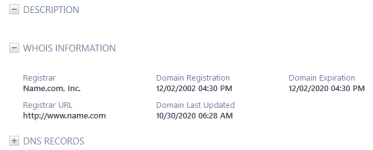 Domain Registration (Registration Date, Registration Time) | The date and time the domain was first registered. Date and time are shown in the user's local timezone. |