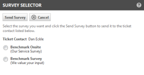 NOTE   This option will not be available if the ticket has no contact. Also, contacts who have no email address or who opted out from surveys are not listed.