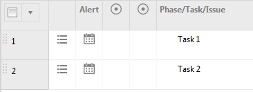 The columns in the table display the phase and task fields that are required, plus any that were selected in the Column Chooser. The columns are described in the Add or Edit a Task topic under Task fields, Details panel.