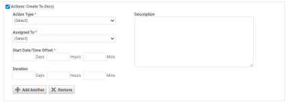 All types of workflow rules allow you to create up to ten CRM to-dos and assign them to resources with CRM permissions. Some types allow you to assign to-dos to a variety of dynamic recipients: