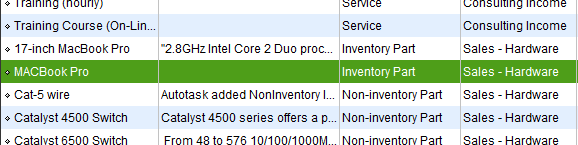 Open the QuickBooks Item List and set up an Inventory Part with a name identical to the product name in Autotask.
