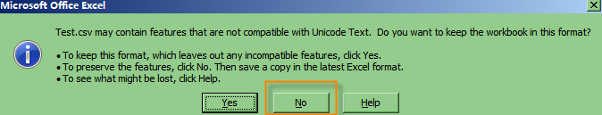 TIP Best Practice: Save the file as .xls or .xlsx to ensure that all characters will display correctly.